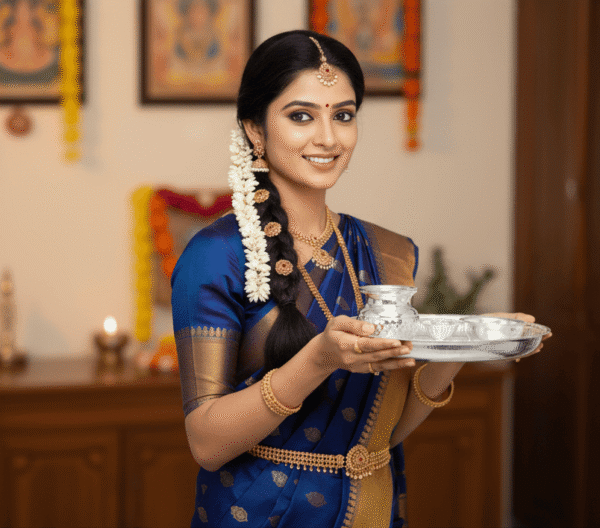 Elevate your dining experience with our Silver Thali Set, a masterpiece crafted by skilled artisans. This set includes a thali, katori, and other essential elements, adding a touch of sophistication to your meals. Explore our collection for more silver articles that showcase exceptional craftsmanship. Care Instructions: Preserve the brilliance of this silver thali set by avoiding contact with corrosive substances and regular polishing.